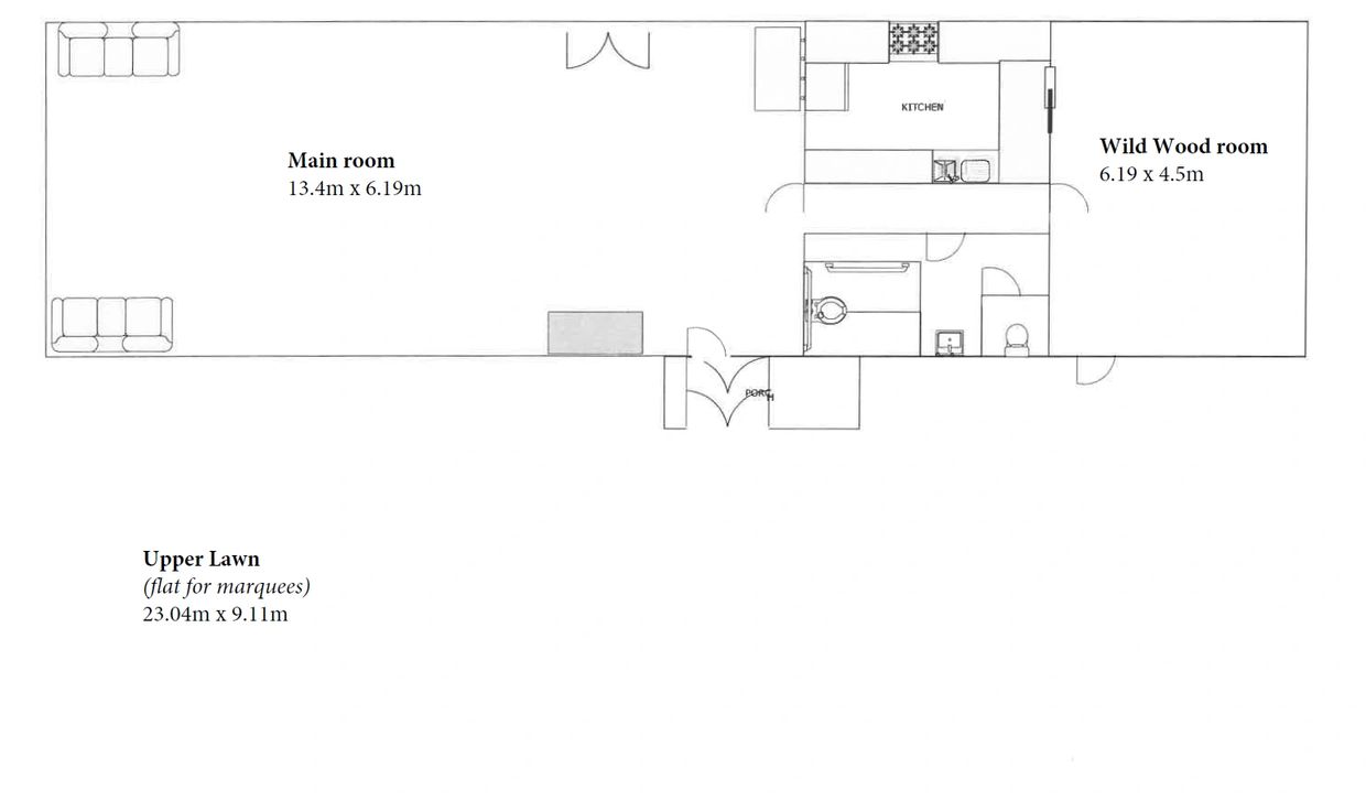 We have a secondary space, Wild Wood, which is a room located to the side of the main room. This is perfect for a separate bar, food prep space, a large cloakroom or a creche.